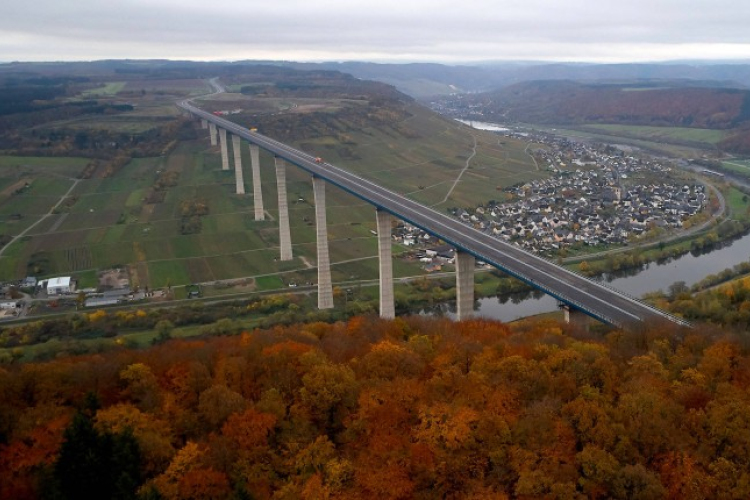 Átadták a forgalomnak csütörtökön Németországban a Mosel folyó felett 160 méteres magasságban átvezető hidat, ezzel befejeződött Európa legnagyobb szabású hídépítő vállalkozása.