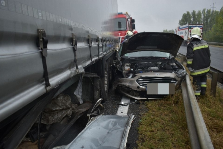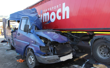 Az M1-es autópálya Győr felé vezető oldalán csütörtökön délelőtt hátulról egy teherautónak ütközött egy kisbusz, a járműben utazók közül két moldovai állampolgár a helyszínen életét vesztette