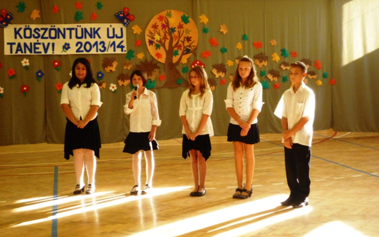 A 6. osztályosok és osztályfőnökük Pittinoné Kutas Erika nagyszerű műsorral hangolta a közönséget az új tanévre. Kicsit humorosan, kicsit szomorkása búcsúztak a nyártól, köszöntötték az őszt. Azok az első osztályosok, akik a kaposszekcsői óvodába jártak, (azért ők, mert együtt tudtak felkészülni) verses-zenés összeállításban mutatták be, hogyan készültek ők az iskolára.