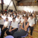 A Sportcsarnokban gyülekeztek az iskola tanárai, tanulói, a szülők és a vendégek. Külön izgalommal érkeztek az elsősök. Ők lesznek 25 fővel az iskola legnagyobb létszámú osztálya.