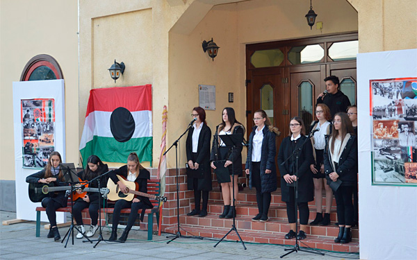 Az Illyés Gyula Gimnázium diákjai elevenítették fel a legfontosabb eseményeket színvonalas műsorukkal és a középiskola igazgatója mondott beszédet hatvannégy év távlatából.